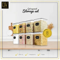 LW Collection Voorraadpotten 6 Stuks Met Stickers Zwarte Deksel