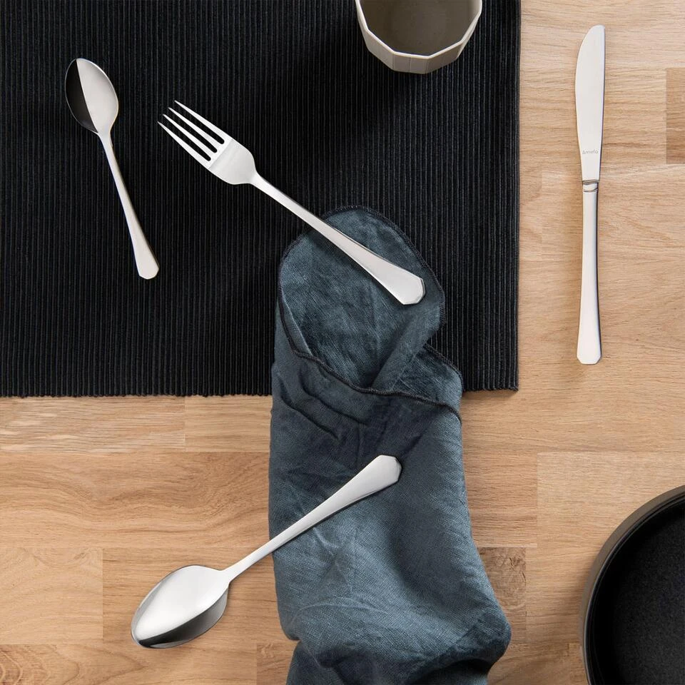 Elke gedekte tafel ziet er nog mooier uit met deze Hexa bestekset van Amefa. Deze eigentijdse bestekset bestaat uit 24 roestvrijstalen onderdelen: 6 tafelmessen, 6 tafelvorken, 6 eetlepels en 6 medium theelepels. De geometrische lijnen van deze bestekset zorgen voor een karakteristieke uitstraling. Elke Amefa set is vaatwasmachinebestendig en het roestvrij staal biedt een hoge corrosieweerstand. Amefa bestek is een prachtige aanvulling op elke eetgelegenheid en is de ideale combinatie met ander bestek.