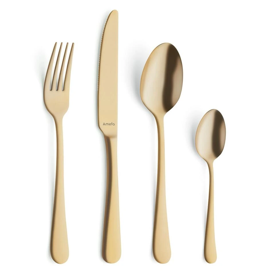 Dit bestek is gemaakt van de beste kwaliteit roestvrij staal en is afgewerkt met een dunne, voedselveilige titanium coating die zorgt voor een levendige kleur.