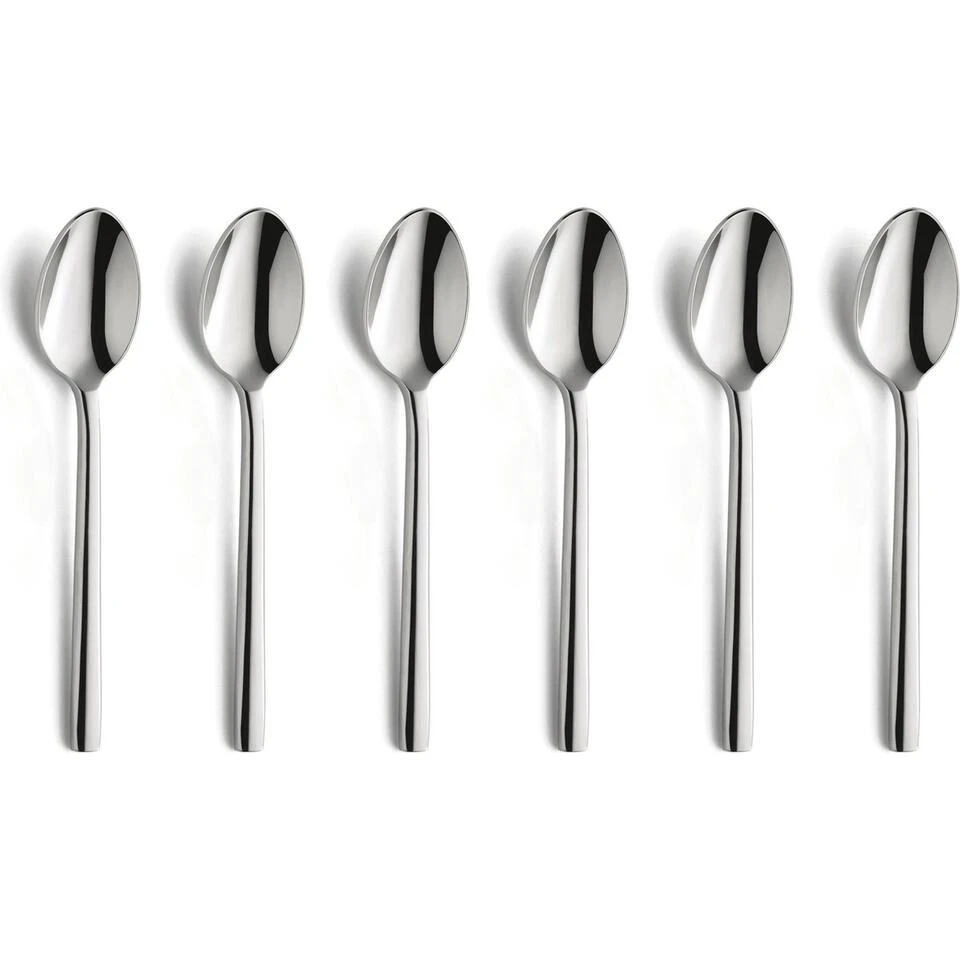 De Amefa Colorado is een model met eenvoudige, subtiele en elegante vormen en luxe uitstraling. Het Colorado model is gesmeed en één van de zwaardere modellen van Amefa en geeft een waar restaurant gevoel aan tafel. De theelepels hebben een hoogglans afwerking. Dit product bestaat uit de volgende onderdelen: – 6 koffielepels in cadeauverpakking De lengte van de theelepel is 11,5 cm.