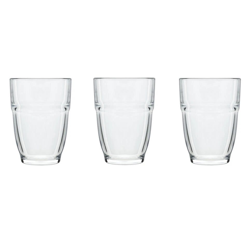 Materiaal: hardglas. Drinkglazen geschikt voor water, sap en frisdrank.