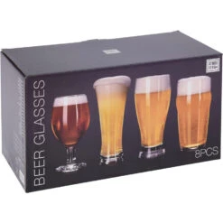 Speciaal bierglazen set van 8x stuks in 4 verschillende soorten. Je ontvangt 2 stuks per bierglas soort, geschikt voor verschillende biersoorten zoals speciaal bier. Inhoud: 2x 400 ml, 2x 380 ml, 2x 565 ml en 2x 570 ml. Materiaal: glas. Geschikt voor in de vaatwasser.