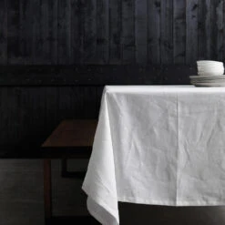 De hoeken van het tafellaken zijn fraai afgewerkt met een zogenaamde “schilderijhoek”. De tafellakens zijn uitgevoerd in de kleuren white, natural en grey en verkrijgbaar in de maten 140×200 cm/140×250 cm/140×300/140×350 cm.