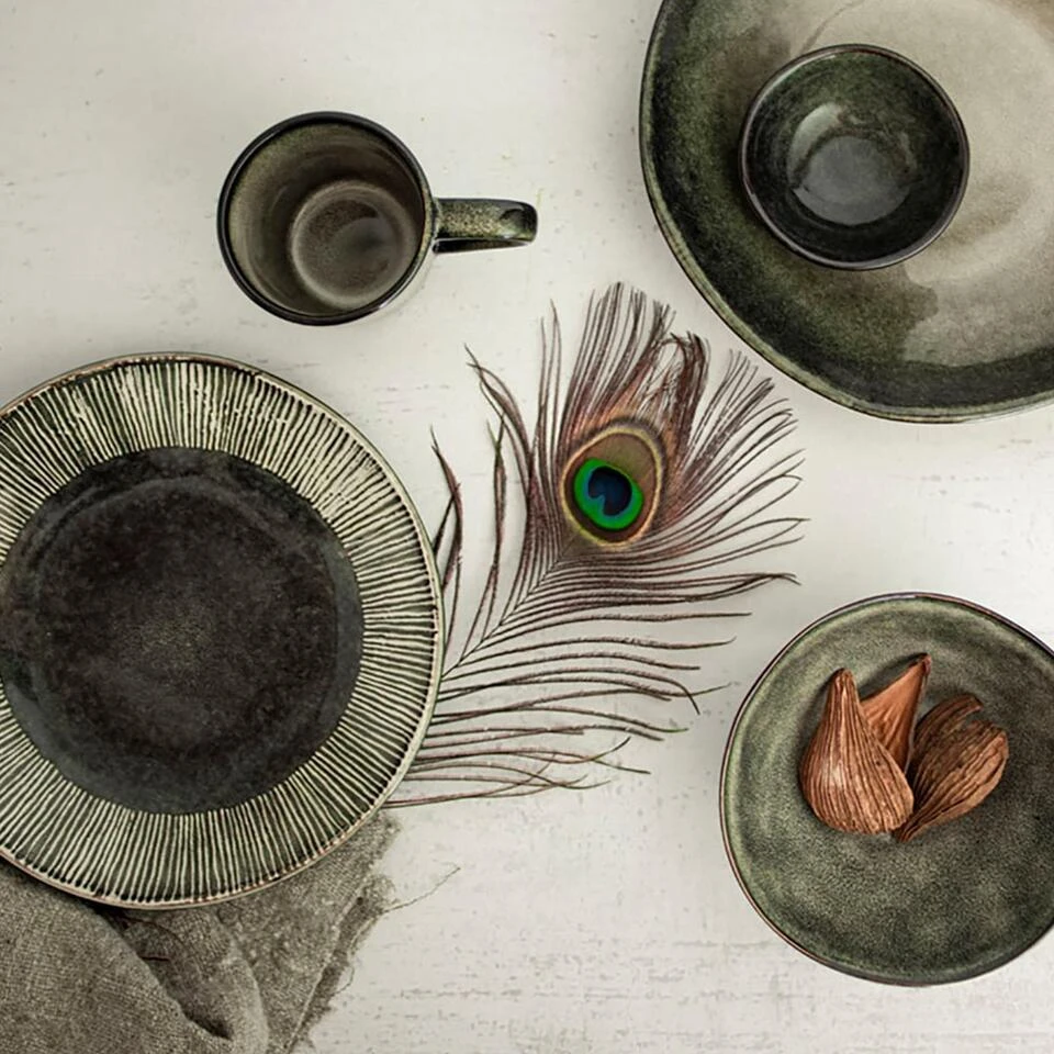 Organic by Dutch Rose Amsterdam is een servies met een pure uitstraling. Dat zie je ook terug in het materiaal van de schaal, die gemaakt is van stoneware. Dit is een soort combinatie tussen porselein en aardewerk: stevig, maar met een warme uitstraling. Naast deze woudgroene schaal kun je ook nog kiezen voor hemelsblauw of kiezelcrème.