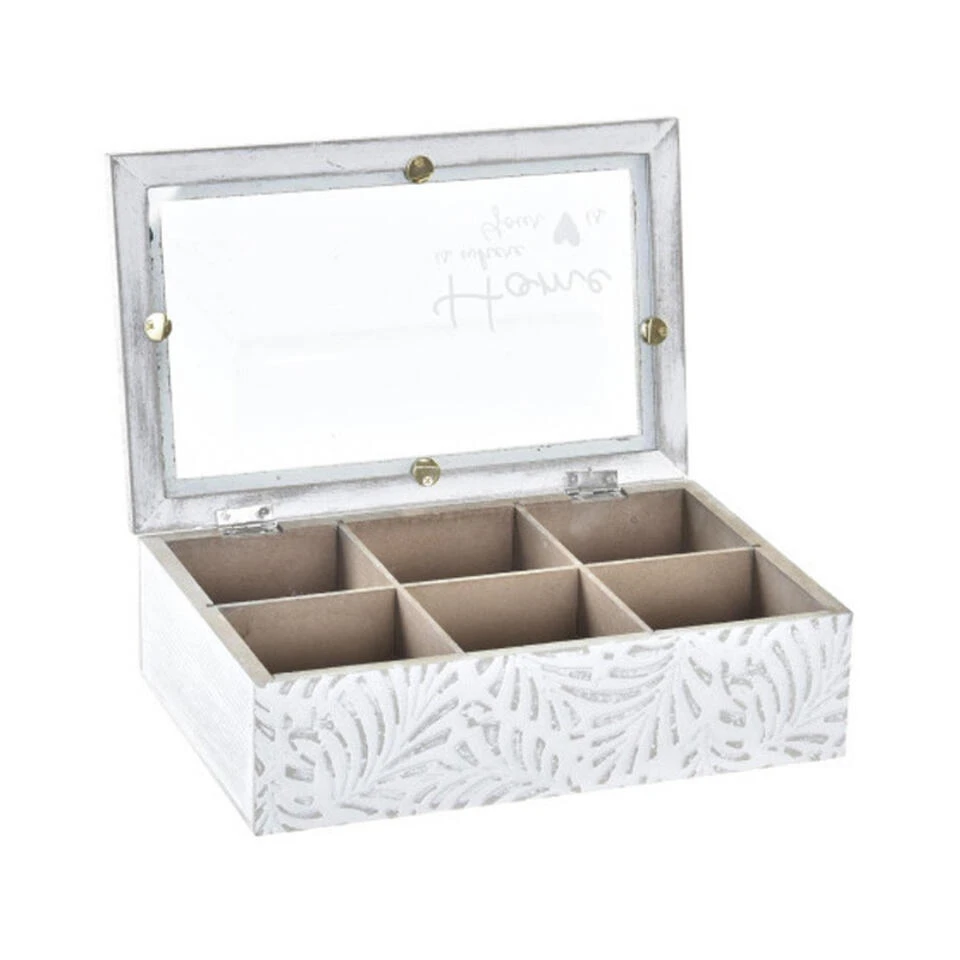 Items Theedoos/theekist Leaves – Hout – Wit – 6 Vakken