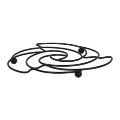 De pannenonderzetter is van metaal gemaakt en heeft de kleur zwart. De zwarte kleur zorgt ervoor dat de onderzetter een stoere uitstraling heeft. Deze pannenonderzetter van zwart metaal past goed in een industrieel interieur, maar staat ook goed in bijvoorbeeld een Scandinavische woonstijl.