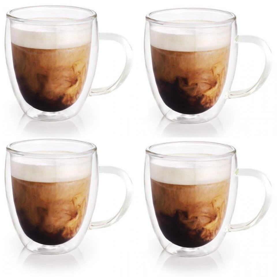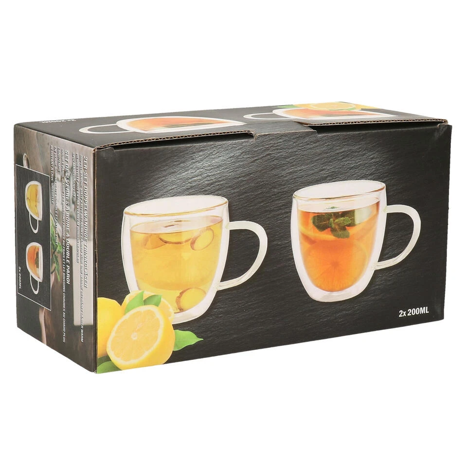 2x Dubbelwandige theeglazen/koffieglazen 240 ml. Dubbelwandige glazen voelen aan de buitenkant koud aan, houdt koude dranken koel en warme dranken langer warm.