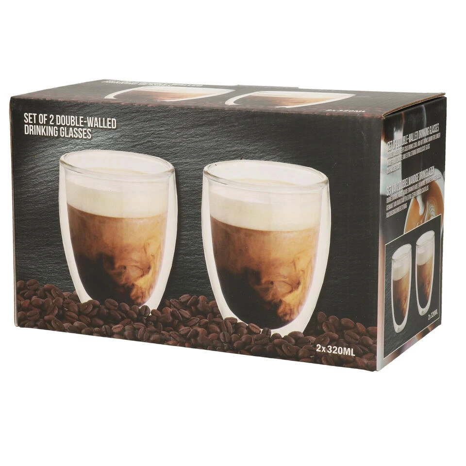Set van 2x dubbelwandige thee/koffieglazen 350 ml. Hittebestendige, transparante koffie/theeglazen met dubbele wand, om zo uw drankje warm te houden zonder uw handen te branden.