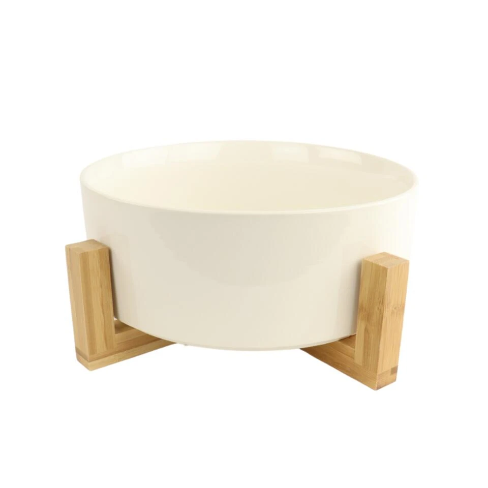 Stevige Slakom set gemaakt van keramiek van het merk Orange85. De saladeschaal heeft een diameter van 23,5 cm en een hoogte van 8 cm. De schaal is gemaakt van keramiek en de standaard waar de schaal op rust is van bamboe materiaal. Bamboe heeft een lange levensduur, is hard, slijtvast en duurzaam. De kom is vaatwasser bestendig.