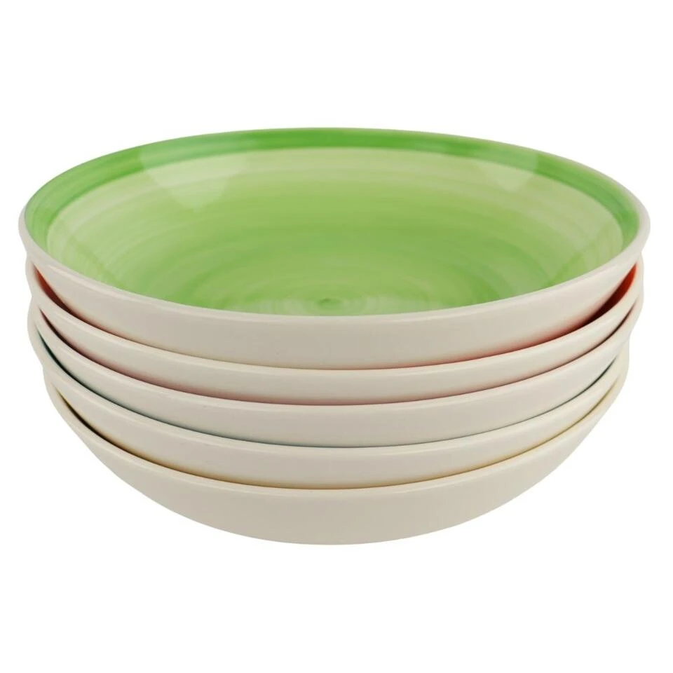 Deze set van Orange85 bestaat uit 5 soepkommen. De soepkom wordt geleverd in 5 verschillende kleuren. Het zijn grote kommen waardoor ze ook te gebruiken zijn als diepe borden. De kommen zijn op te stapelen waardoor het niet veel ruimte kost in de kast. De borden zijn geschikt voor in de vaatwasser.