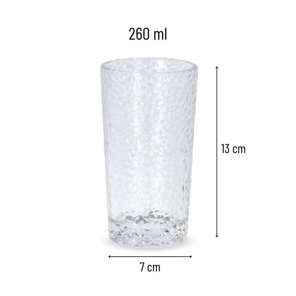 De waterglazen 260 ml van Orange85 zijn afgewerkt met een craquelé effect in het glas. Hierdoor hebben ze een stijlvolle uitstraling. Je ontvangt deze glazen in een set van 4. Ze zijn geschikt voor in de vaatwasser. Met een afmeting van 7 x 7 x 13 cm hebben ze het formaat van een longdrinkglas.
