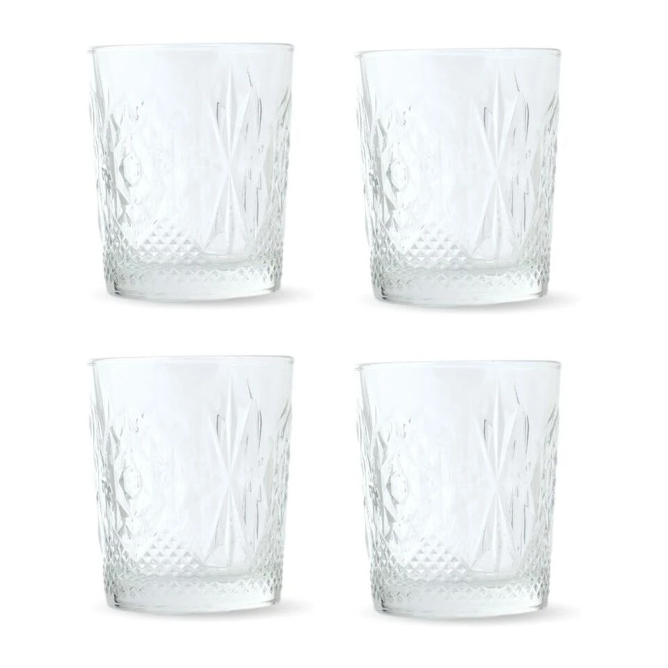 Deze Orange85 glazen zijn geschikt voor verschillende dranken. U kunt de glazen bijvoorbeeld gebruiken als waterglazen of als cocktailglazen. Het reliëf aan de zijkant van het glas geeft het glas een luxe uitstraling. In deze set zitten vier glazen met een inhoud van 370 ml. De glazen zijn eenvoudig op te bergen door ze te stapelen. De glazen zijn geschikt voor in de vaatwasser.