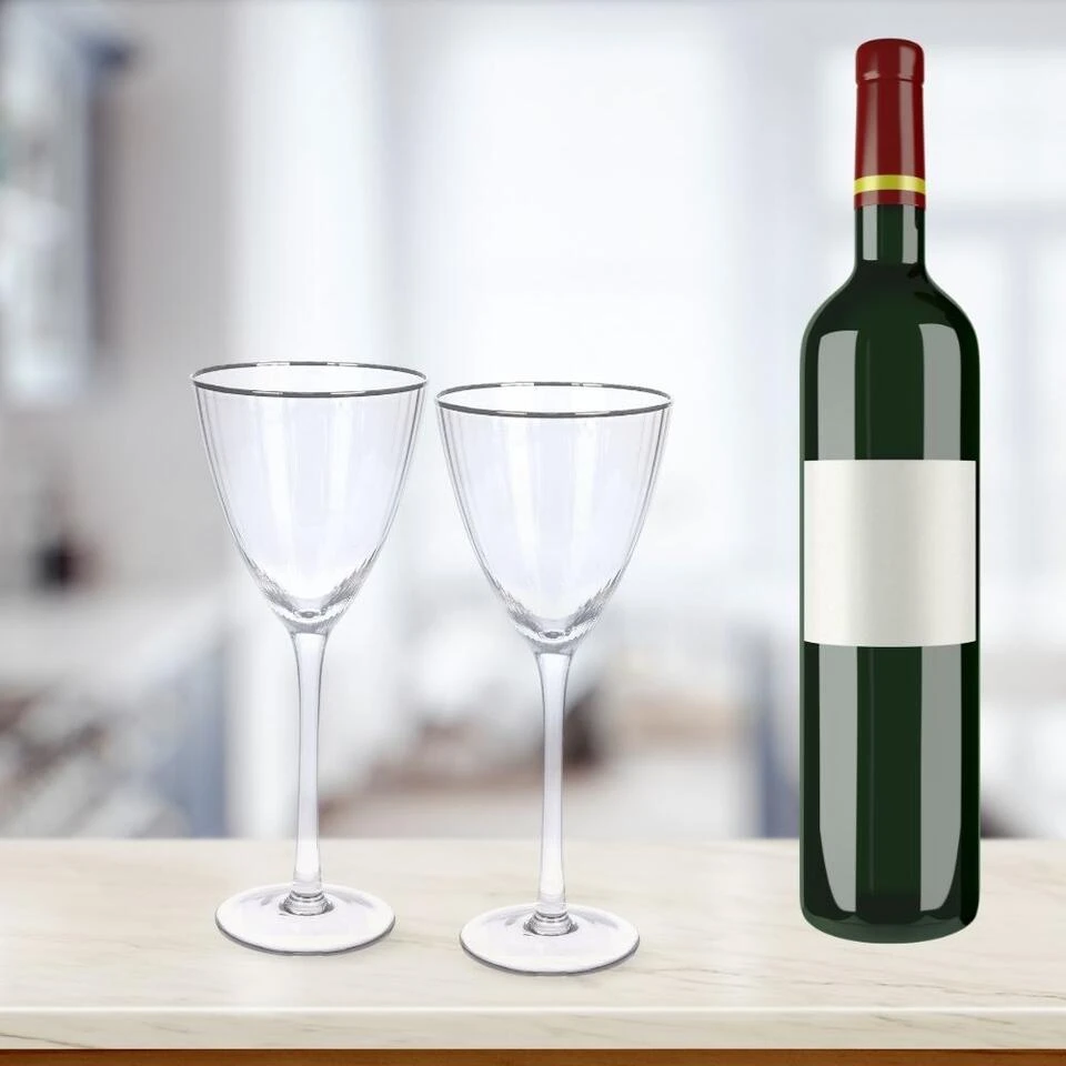 2 luxe wijnglazen van het merk Orange85. De glazen zijn afgewerkt met een luxe rand aan de bovenkant. Dit geeft ze een chique uitstraling. De inhoud is ca. 420 ml. De wijnglazen zijn niet geschikt voor in de vaatwasser. Advies is dus om deze met de hand af te wassen.