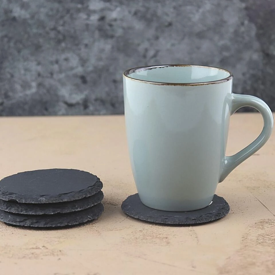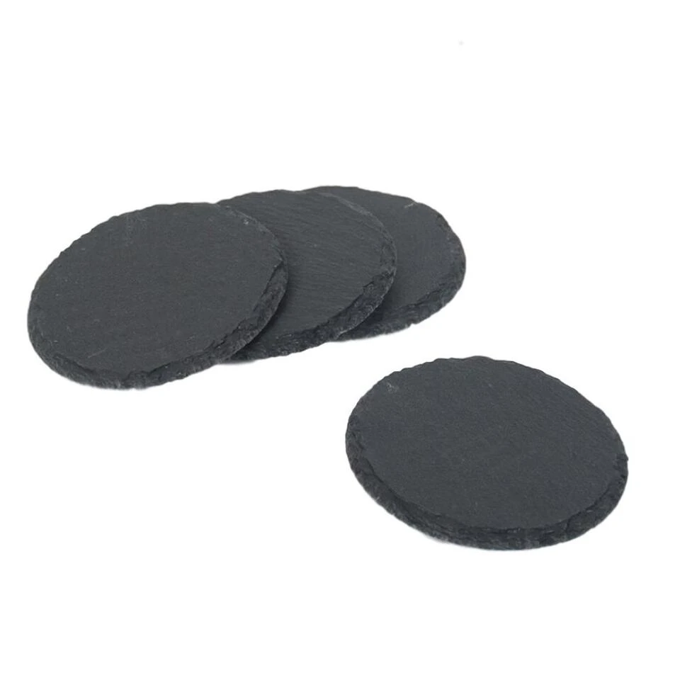 Zwarte ronde onderzetters gemaakt van Leisteen van het merk Orange85. De onderzetters hebben een diameter van 9 cm en zijn geschikt voor drinkglazen. De onderkant is voorzien van 3 viltjes om verschuiving te voorkomen.