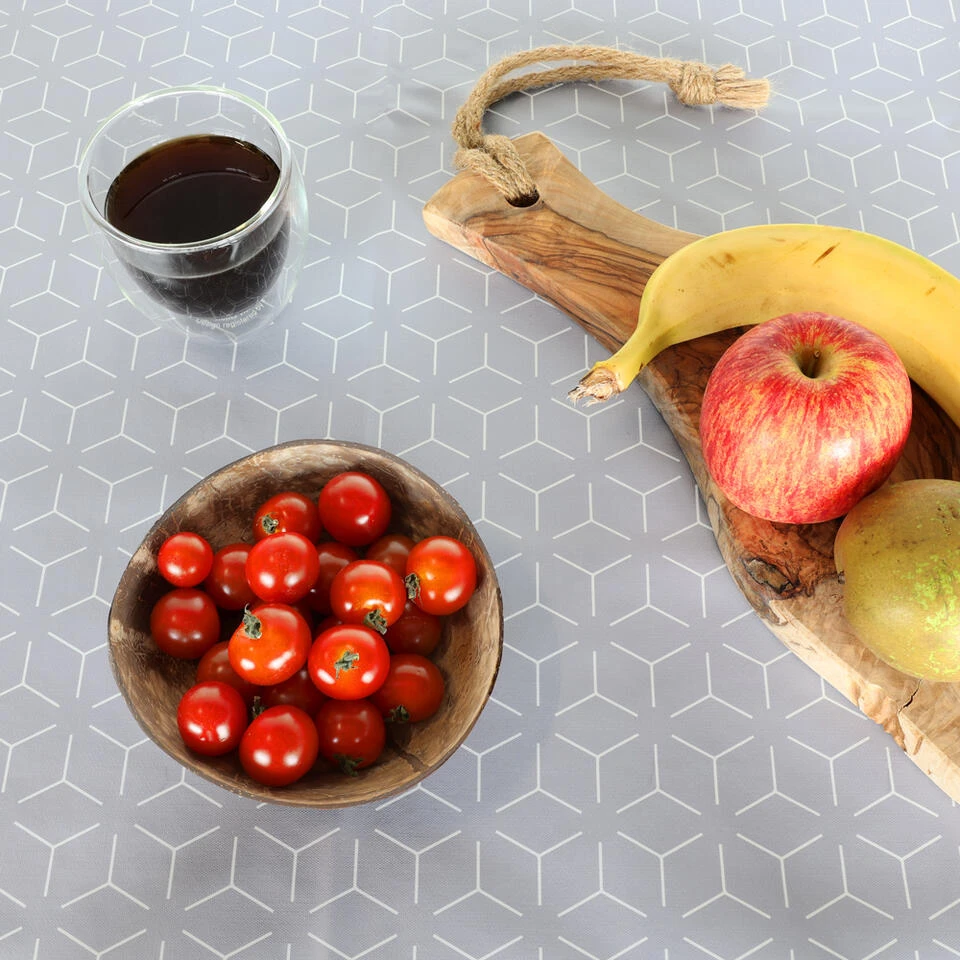Wil jij jouw interieur aankleden en daarbij je tafelblad beschermen tegen krassen en vlekken? Dat kan met dit moderne tafelkleed. De geometrische print in een licht grijze kleur, past helemaal in een stoer interieur.