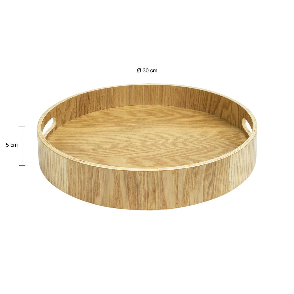 Dit rond dienblad van QUVIO is erg handig voor het serveren thee, koffie, snacks, water en frisdrank. De afmeting van 30 x 30 x 5 centimeter zorgt ervoor dat er meerdere glazen of een paar kleine borden met dit dienblad kunnen worden geserveerd. Het houten design zorgt voor een natuurlijke look en gaat ook nog eens voor een onwijs lange tijd mee.