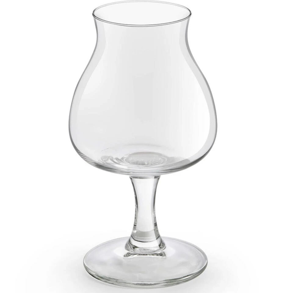Geschikt voor: vaatwasser. Materiaal: glas. Formaat: Diameter boven: 5 cm. Diameter midden: 8 cm. Diameter onder: 7 cm. Doorsnede glas: 5 cm. Dit type tulpvormig glas voor bieren is een van de meest veelzijdige bierglazen. De vorm houdt aromas goed vast en er is ruimte voor een grote schuimkraag. Heel veel bierstijlen en met name Belgische bieren komen goed tot hun recht in deze glazen. De voet zorgt voor een minimale warme-uitwisseling. Bier drinken/tulpvormige bierglazen van glas.