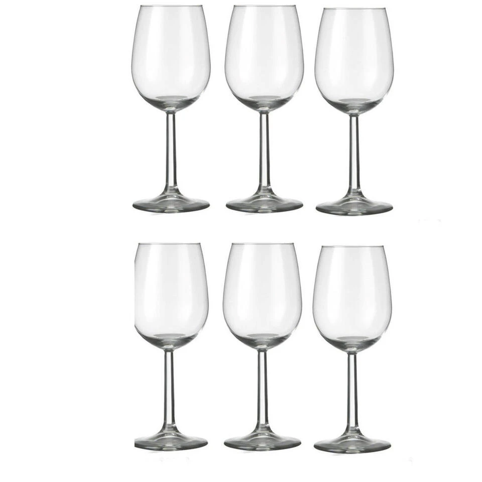 Set van 6x stuks wijnglazen transparant. Inhoud: 290 ml (29cl). Materiaal: glas. Formaat: diameter boven: 5,5 cm. Diameter midden: 7 cm. Diameter onder: 7 cm. Hoogte: 18,6 cm. Geschikt voor: vaatwasser. Geschikte dranken: witte wijn. Zoek voor meer glazen in deze serie op: Bouquet.
