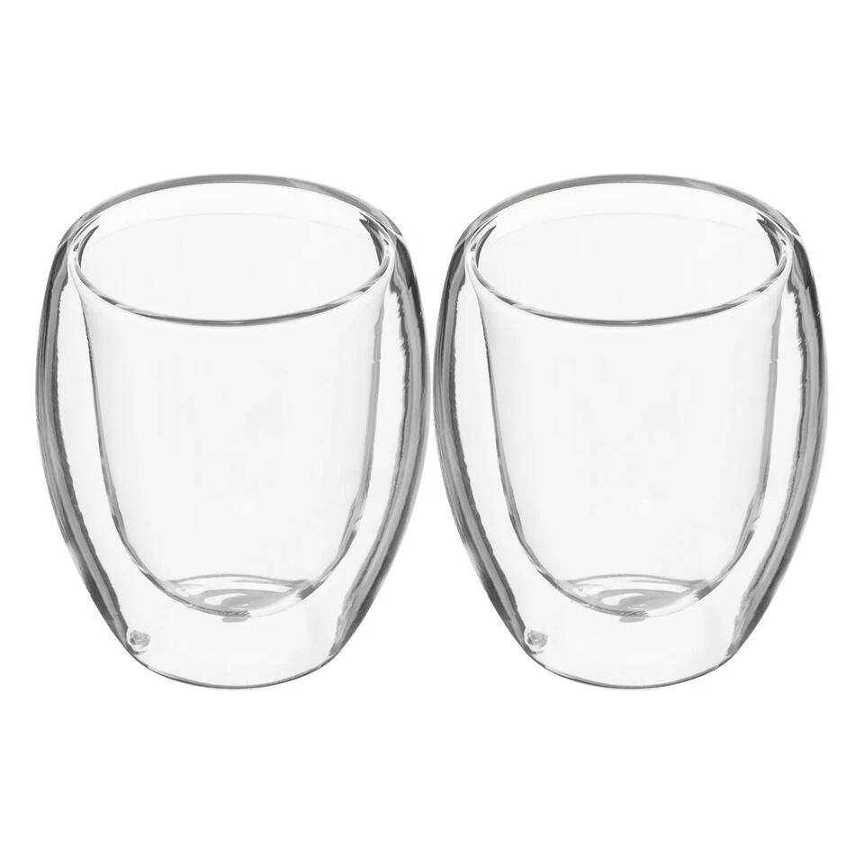 Set van 2x espressokopjes dubbelwandig glas 70 ml. Deze handige glazen beschikken over een dubbele wand zodat jouw koffie minder snel afkoelt. Materiaal: glas. Inhoud: 70 ml. Afmeting doorsnede ca: :5,9 x 6,4 cm. Vaatwasserbestendig. – Koffie drinken – Espresso – Ristretto – Dubbele espresso – Italiaanse koffie – Espresso macchiato –