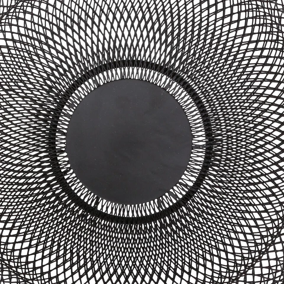 Fruitschaal/fruitmand rond zwart metaal 27 cm. De opengewerkte schaal zorgt voor een constante luchtcirculatie waardoor het fruit minder snel overrijp is. Afmeting: ca. D27 x H12 cm. Reinigen: afnemen met een vochtige doek. Fruitschalen/fruitmanden/draadmanden.