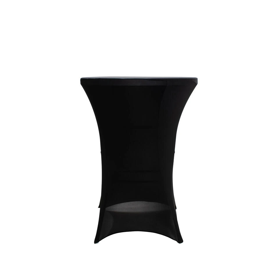 Deze luxe zwarte statafelrok geeft jouw evenement direct een onbetaalbare uitstraling. De hoes is geschikt voor ronde statafels van ongeveer 110 cm hoog, met een blad van 80 cm doorsnede. De gladde stretchstof zorgt ervoor dat de statafelrok met gemak om de tafel gaat en bovendien perfect aansluit. De hoeken aan de onderzijde zijn voorzien van stevig elastiek, zodat de statafelhoes goed blijft zitten en bovendien minder snel slijt.