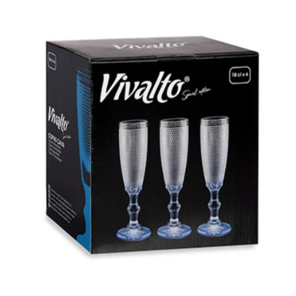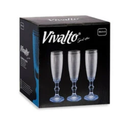 Vivalto – Luxe Champagneglazen Monaco Serie Set 6x Blauwe Voet 180 Ml