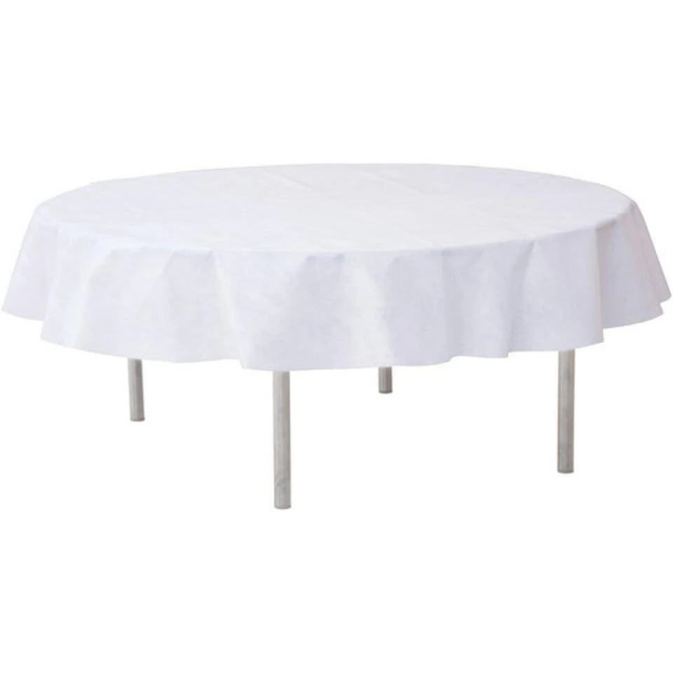 Wit rond tafelkleed/tafellaken 180 cm non woven polypropyleen. Rond tafeldecoratie kleed van witte non woven materiaal. Het tafelkleed is geschikt voor gebruik binnenshuis (binnen/indoor) en voor gebruik buitenshuis (buiten/outdoor) bij goede weersomstandigheden.