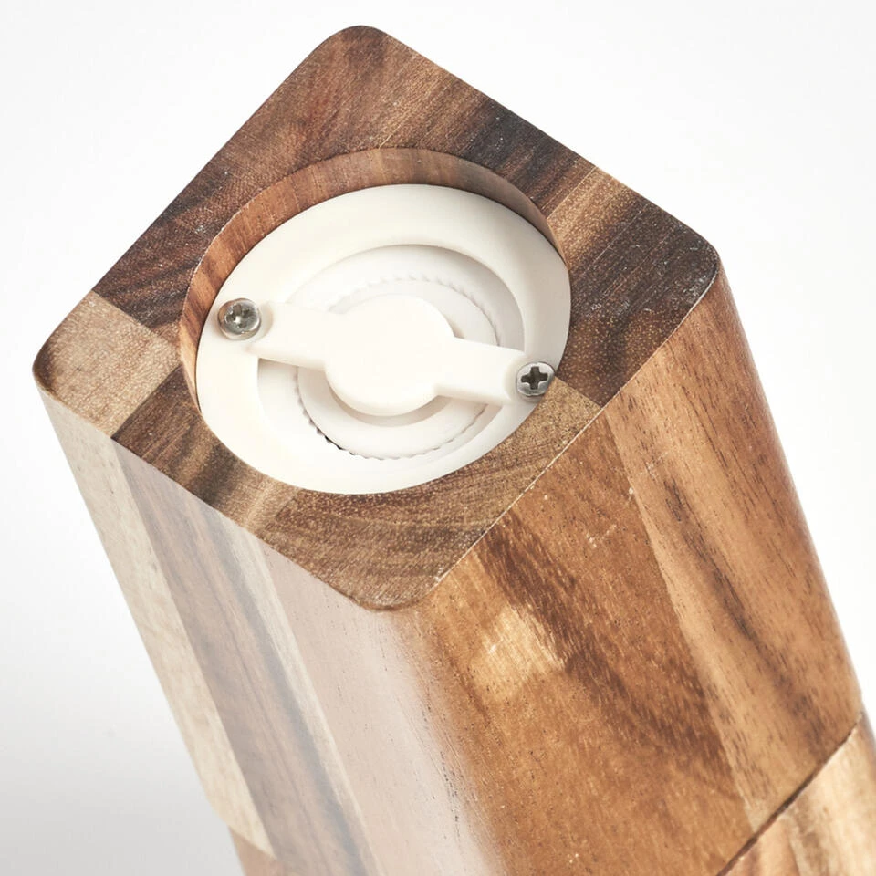 Afmeting: ca. 5 x 5 x 21 cm. Materiaal: acacia hout met keramische molen.